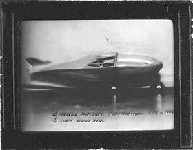 By October, AMC was constructing a wind tunnel model of a man-made saucer concept -- possibly the model shown below, or maybe an earlier version similar to the "Martin" concept. Loedding was an experienced builder of flying model airplanes and in later years showed at least two of them to Dayton reporters, as in the 1959 photo below, which clearly still used longitudinal BLC slots (arrow) similar to the ones in his 1948 patent.